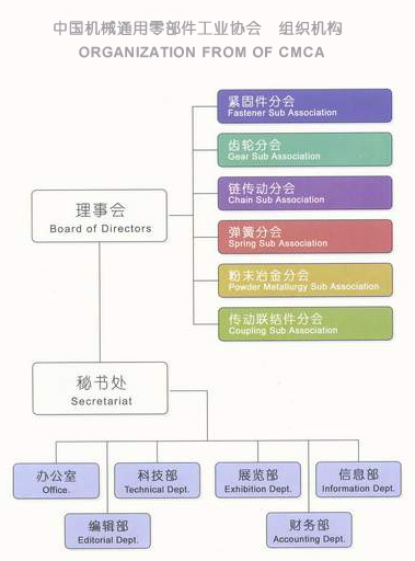 There are 6 branch associations under the China General Machine Components Industry Association, namely the Fasteners, Gears, Chains Transmission, Springs, Powder Metallurgy and Couplings Sub Association.