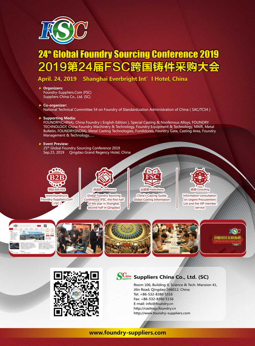 ? Interactivity: SC will assist you in operating casting transaction with the aim of creating a purchasing platform both online and offline. Apart from having collected information of over 3,000 Chinese casting suppliers, orientation of products, standard authentication, casting technology, manufacturing capacity and annual output included, etc., our online platform –www.foundry-suppliers.com also contains detailed information regarding purchasing blueprint/drawing papers, manufacturing requirements and contact information of transnational casting purchasers, to promote online trading for both suppliers and purchasers.