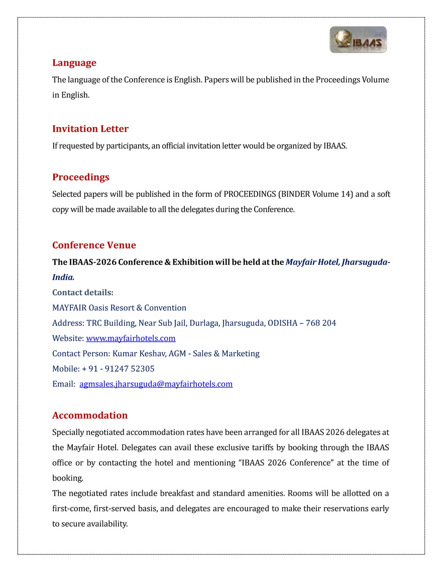 The International Bauxite, Alumina & Aluminium Society (IBAAS) is pleased to announce the 14th International Bauxite, Alumina & Aluminium Conference & Exhibition (IBAAS-2026), scheduled during September 9–11, 2026 in Jharsuguda, Odisha, India. This edition comes at a pivotal time when the aluminium industry is accelerating its transition toward low-carbon operations, clean energy adoption and sustainable growth. Accordingly, the theme of IBAAS-2026 is “Global Aluminium Outlook 2030: Secure Resources, Efficient Energy and Value from Wastes”.